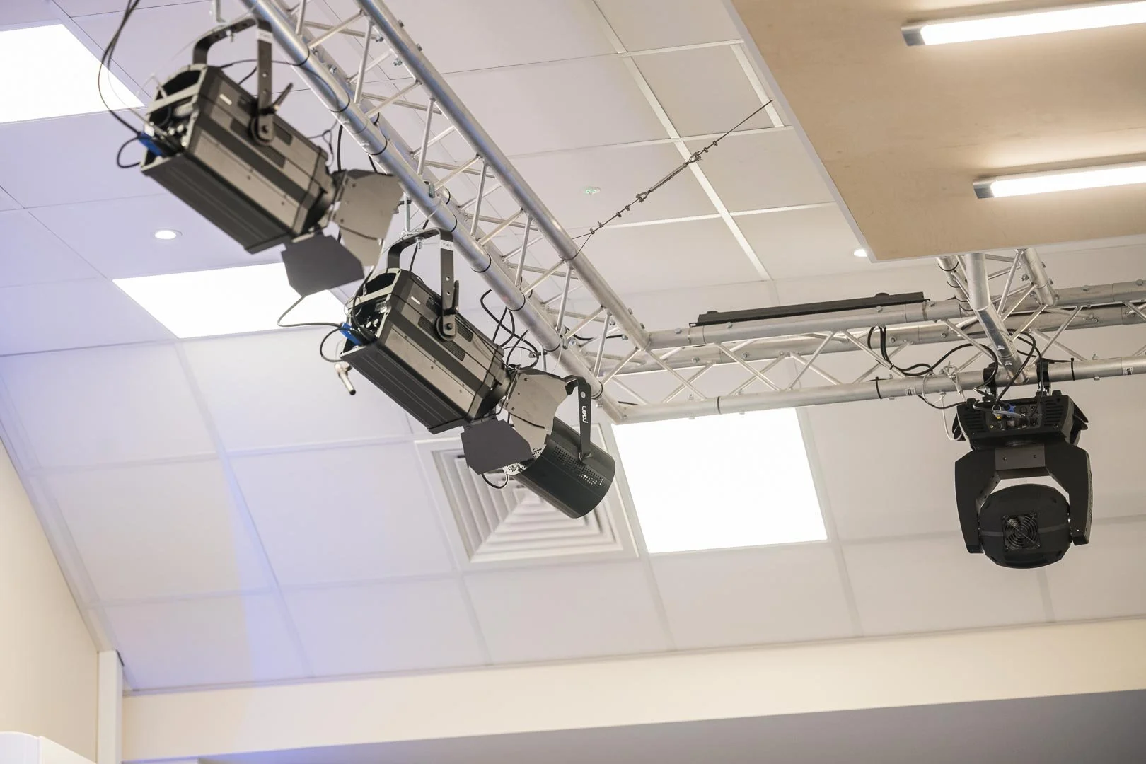 To house the high-level AV equipment necessary for the Church, a complete electrical rewiring was carried out. A new hanging M&E platform was also added, along with a new fire alarm system. To bring the areas in line with the new main hall space, new W/Cs were installed throughout and an industrial kitchen was added. Due to the building's age, a high level of asbestos was identified and removed swiftly and safely. Lastly, the entire building was redecorated, giving it a fresh and new feel for the client.